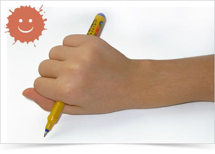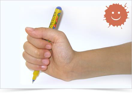 Tento úchop je další variantou dlaňového úchopu mladších dětí. Využívají ho většinou při kreslení na svislé plochy papíru, zdí.