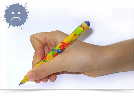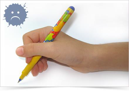 Prsty vytvářejí přílišný tlak na psací náčiní, ukazováček se prohýbá a je ve špatném položení. Prsty jsou omezené v pohybu a při potřebě delšího a rychlejšího psaní se snižuje rychlost a kvalita písma. Ruka bolí a je v napětí.